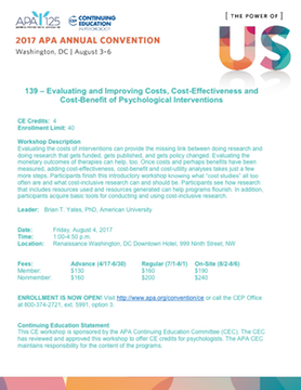 Brian’s application to the APA (American Psychological Association) to present a half-day CE (Continuing Education) workshop at the 2017 convention has been accepted, and online registration has begun http://www.apa.org/convention/ce).